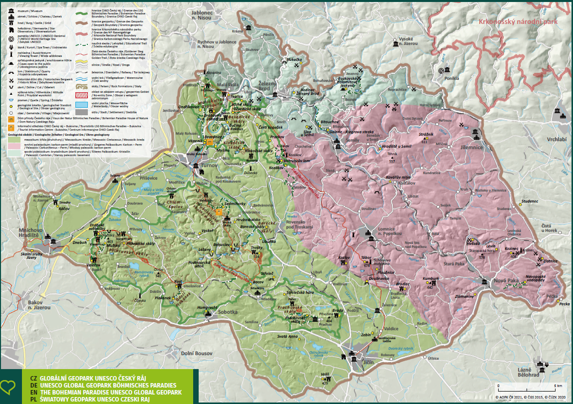 Geopark Český ráj oblast o rozloze 760 km², která byla do prestižního seznamu UNESCO zapsána v roce 2005. Zahrnuje širokou škálu geologických, paleontologických, mineralogických lokalit mezi městy Mnichovo Hradiště, Železný Brod, Jilemnice, Nová Paka a Jičín.